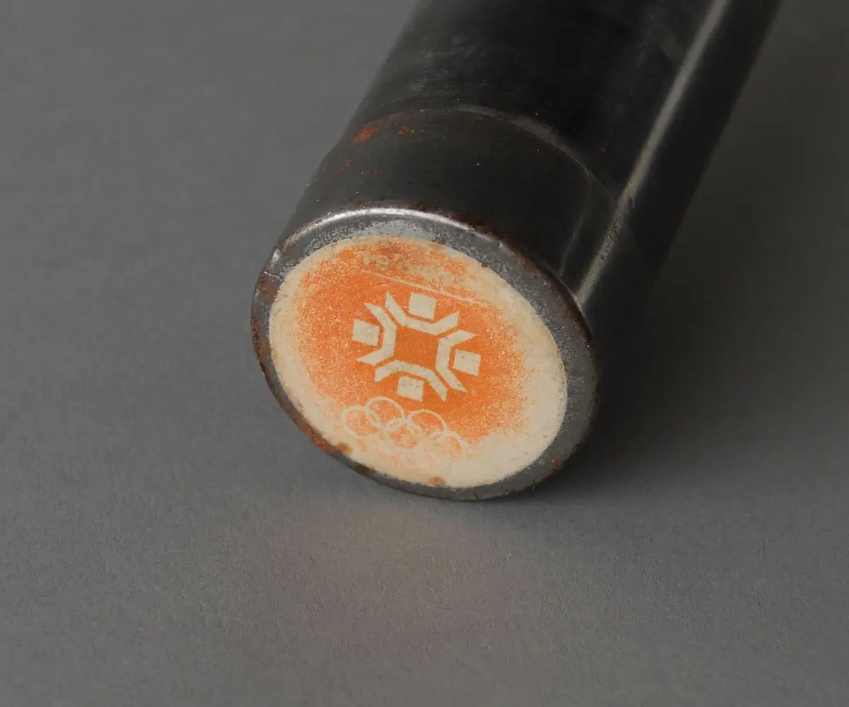 Detalj gornjeg prstena baklje prikazuje zaštitni obruč s utisnutom oznakom "Sarajevo '84".