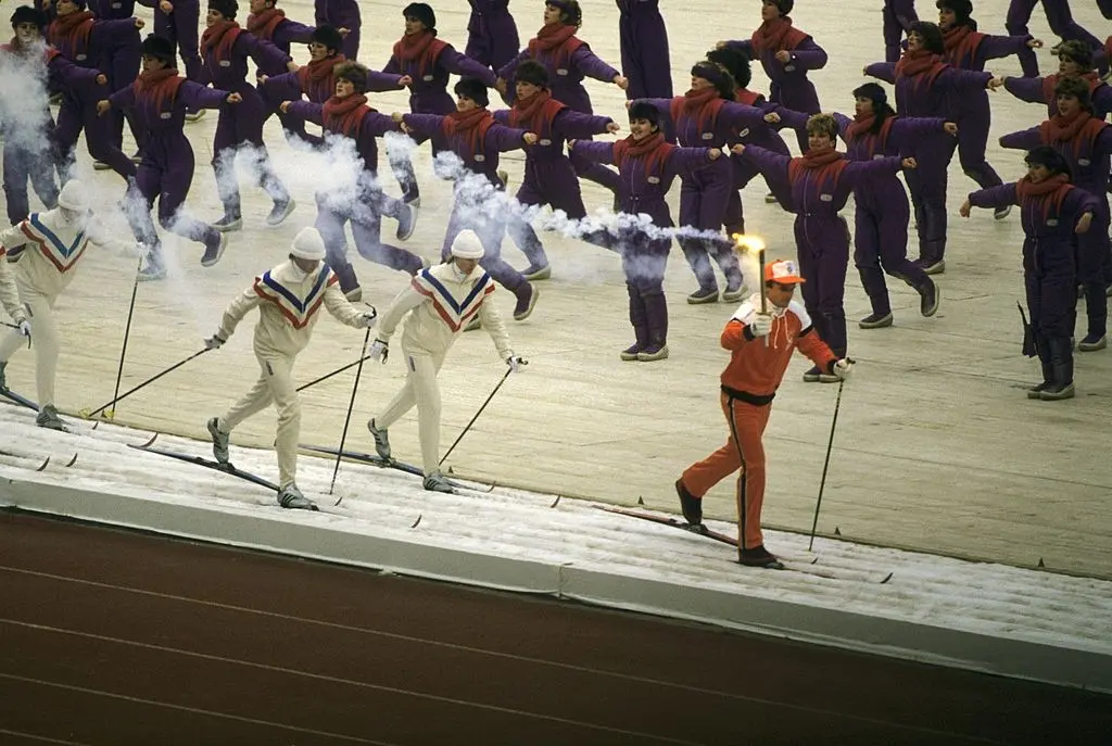 Posljednja etapa na Koševu prikazuje ulazak plamena u ceremoniju otvaranja neposredno prije paljenja plamenika.