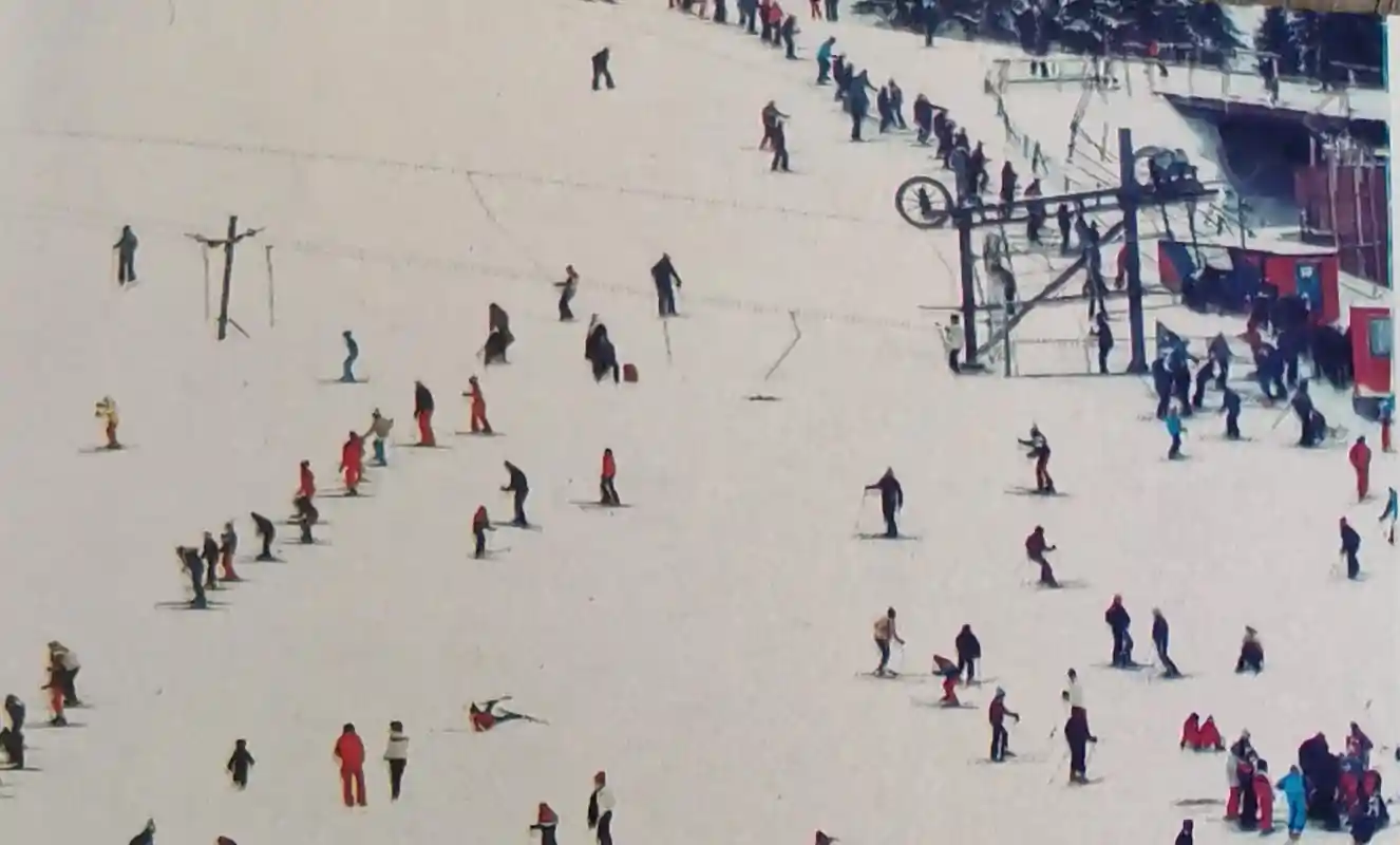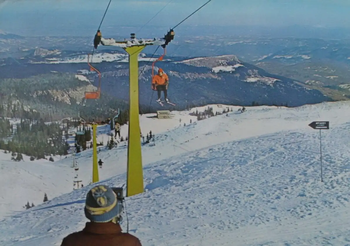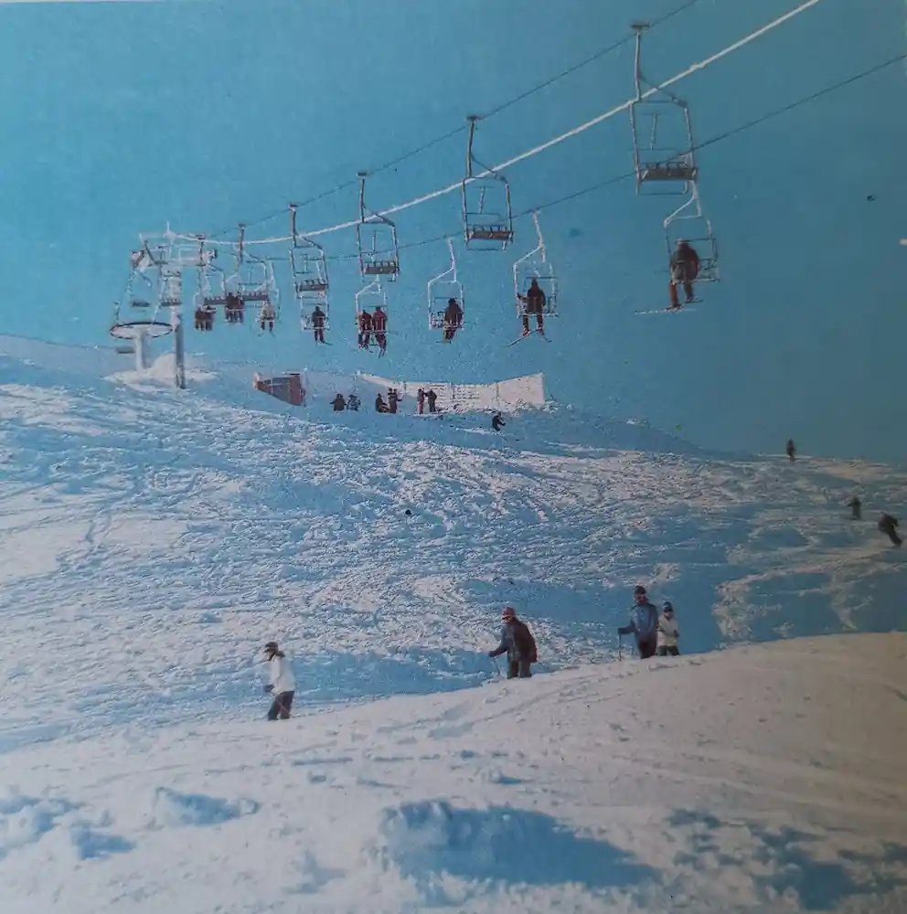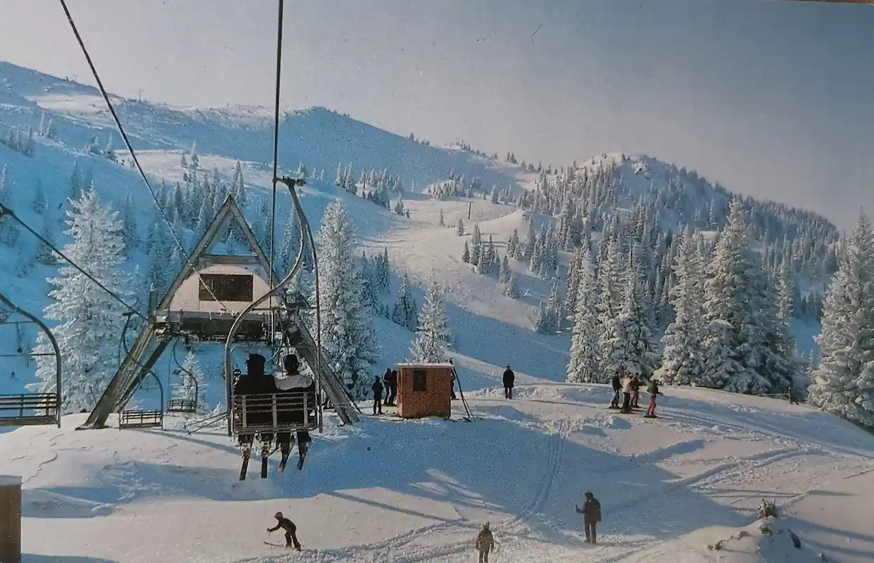 Prijelaz sjedežnice iz 1970-ih bilježi sistem manjeg kapaciteta koji je prethodio velikim olimpijskim zahvatima.