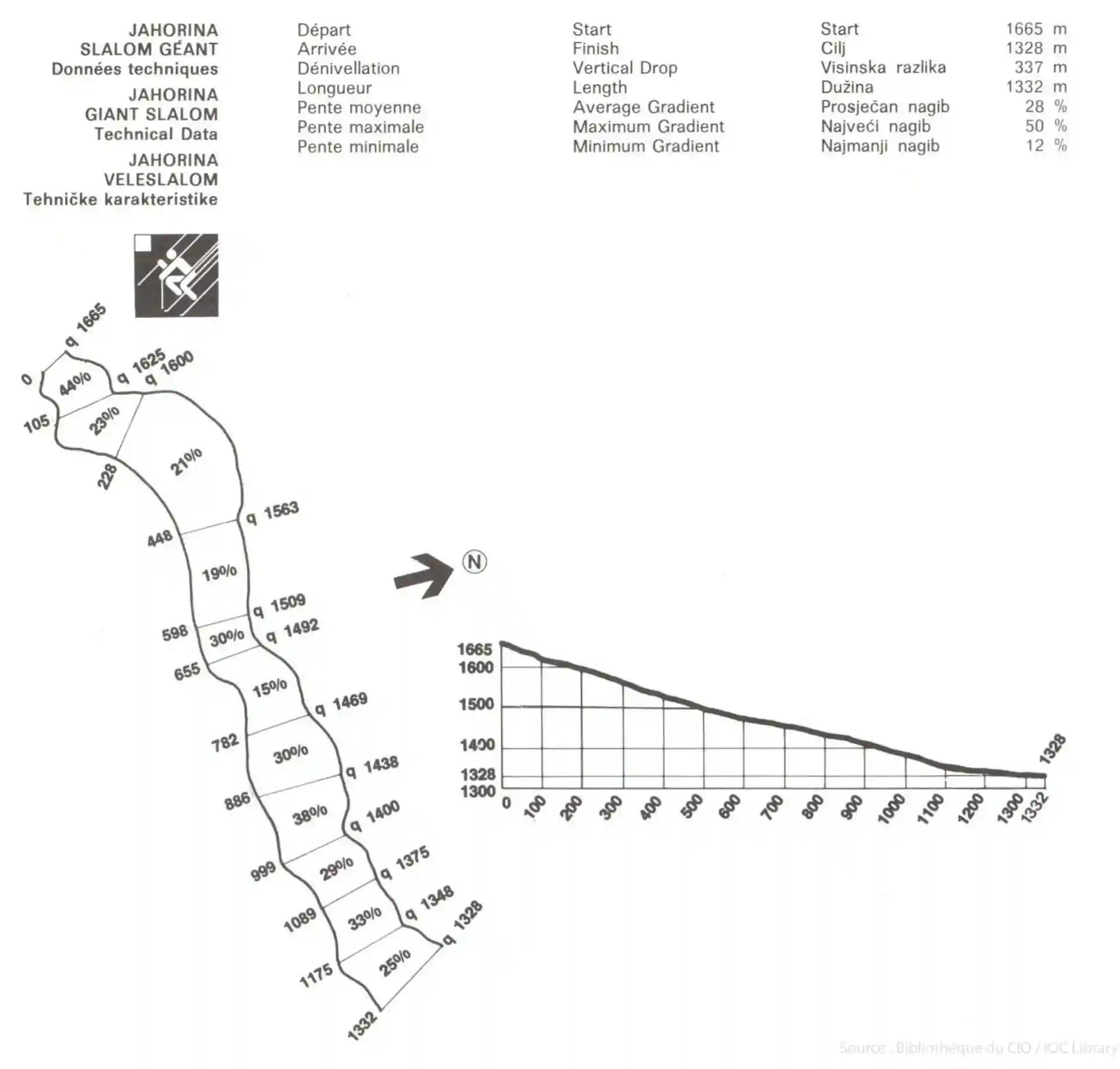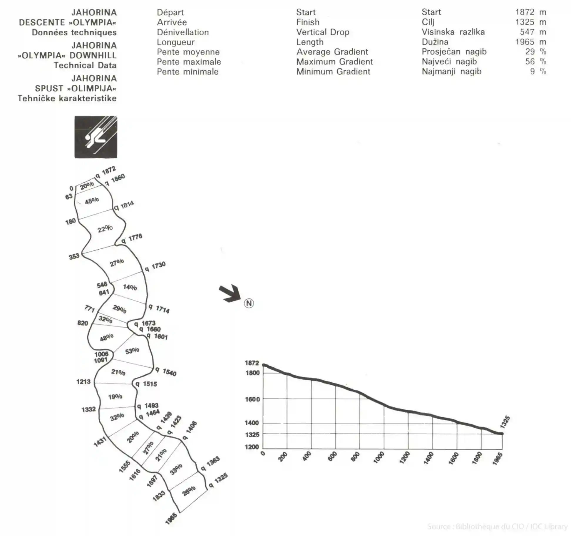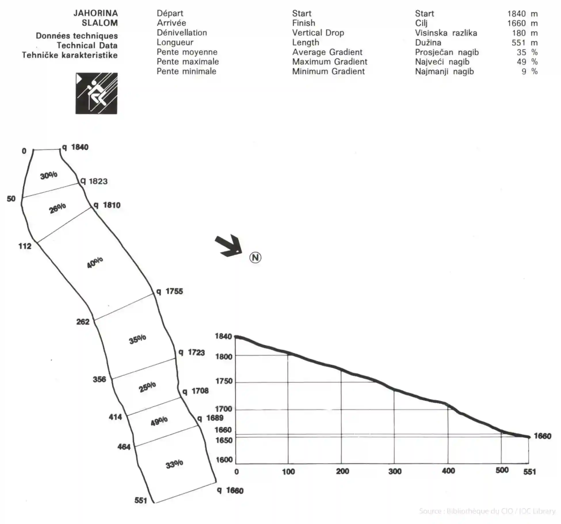 - Nadmorske visine staza 1984.: start spusta na 1.871 m; ciljna zona na 1.326 m