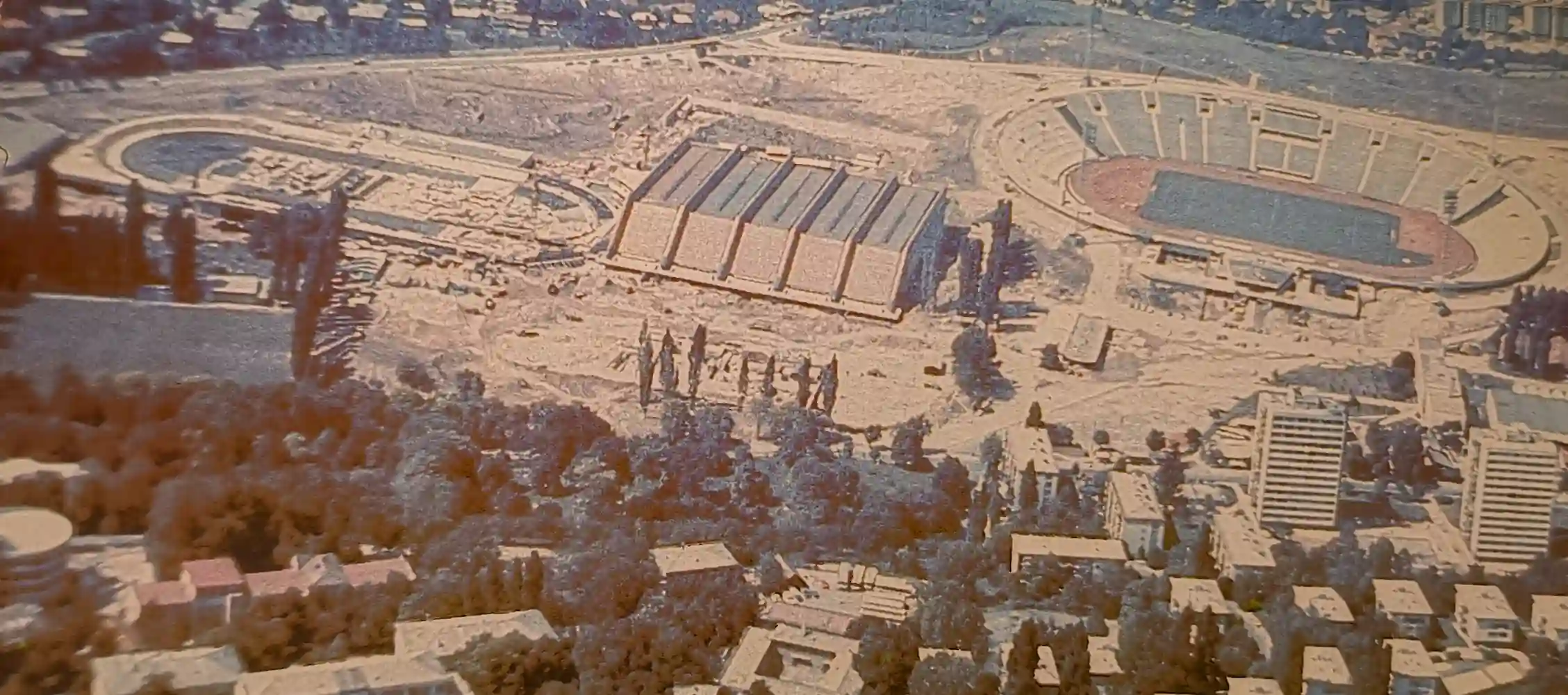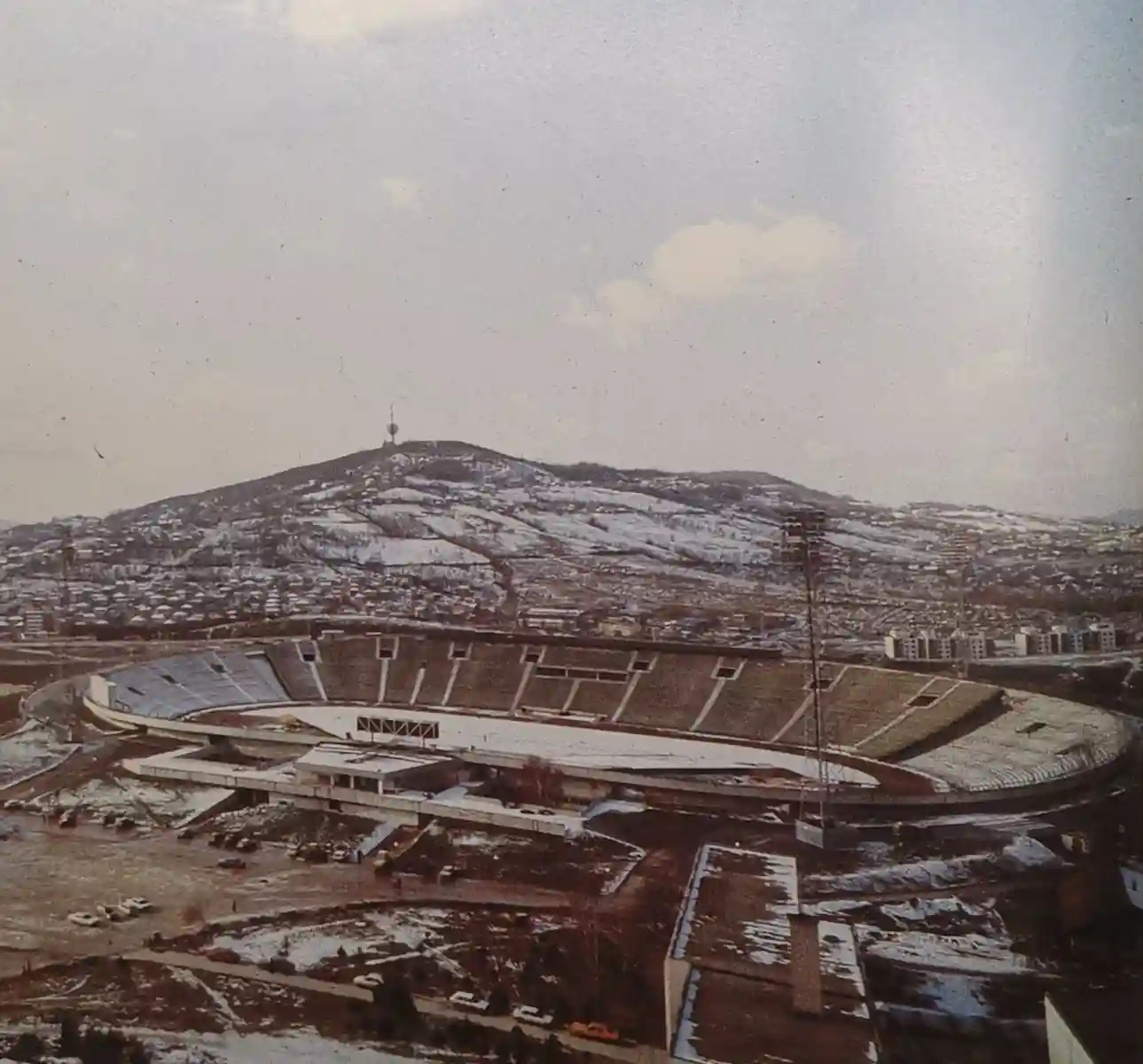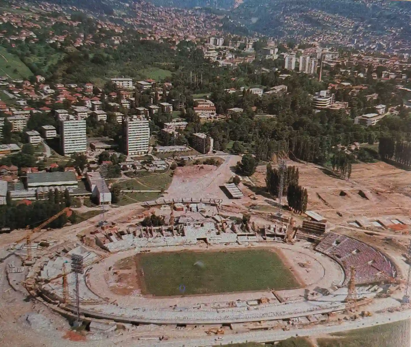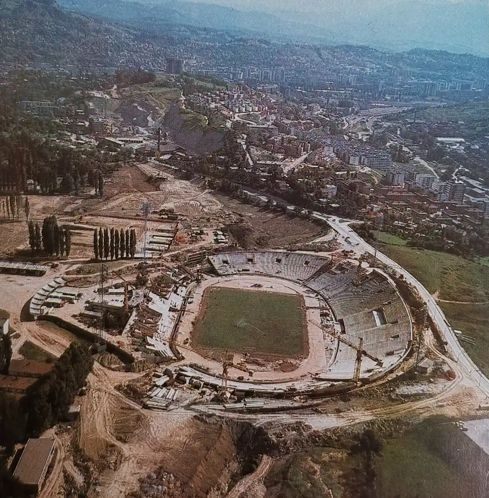 Ovaj zračni snimak povezuje Koševo sa susjednim kompleksom Zetra u završnoj fazi olimpijskih priprema.