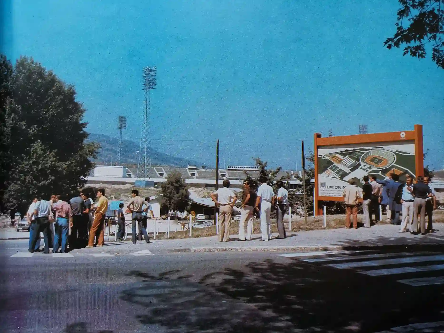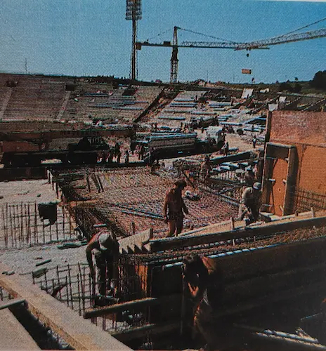 Radnici i kranovi na tribinama svjedoče o intenzivnom tempu konstruktivnih zahvata pred 1984.