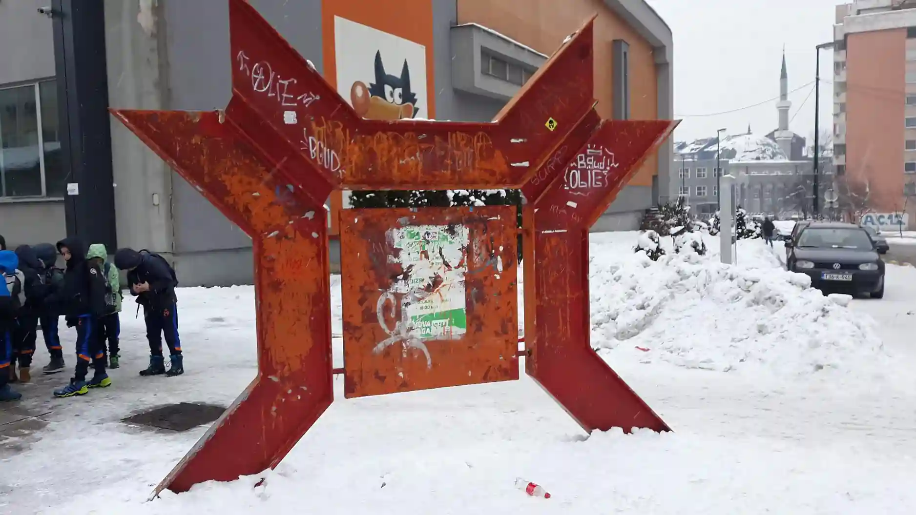 - Ikonični olimpijski natpis dobrodošlice prefarban je upozorenjem "Snajper pozor", uz strelicu usmjerenu prema brdima.