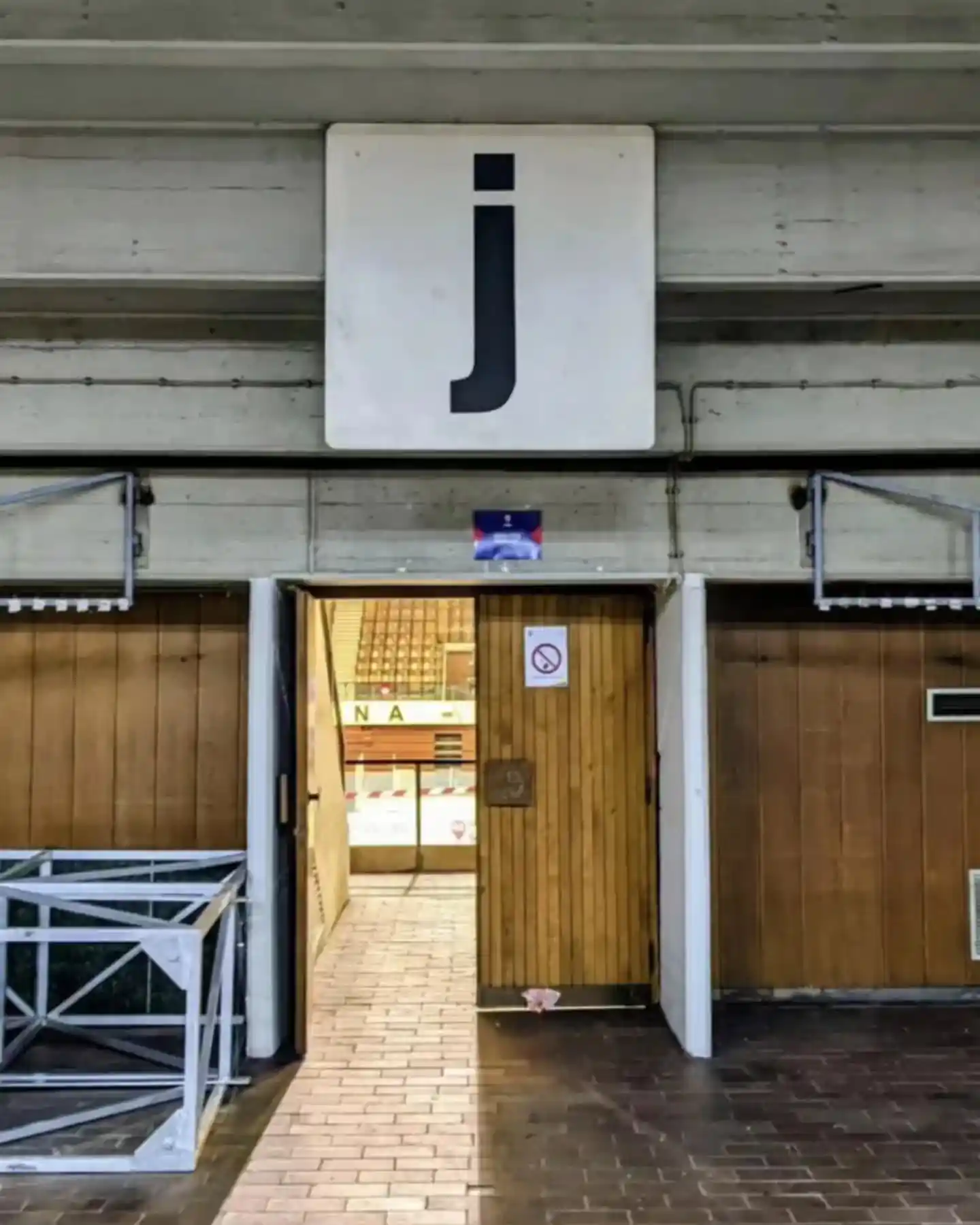 Ulaz u sektor J prikazuje unutrašnju komunikacijsku tačku koja povezuje hodnik sa sjedištima i klizalištem.