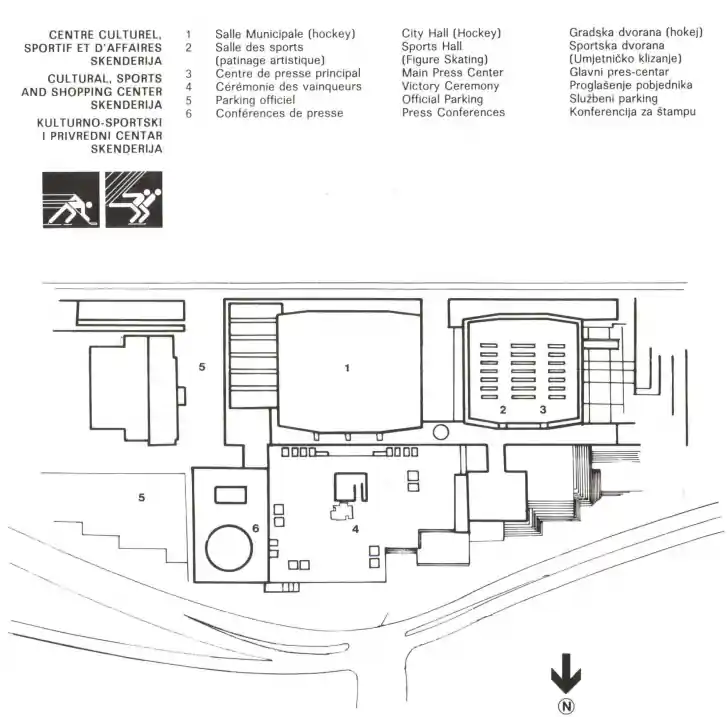 Kao urbano srce Zimskih olimpijskih igara 1984, kompleks Skenderija bio je glavno društveno i logističko uporište Igara. Dok su planine bile pozornica za takmičenja, Skenderija je pružala prostor za slavlje, djelujući kao Glavni press centar i centralno mjesto dodjele medalja. Ovaj prostrani višenamjenski lokalitet prerastao je iz kulturnog spomenika 1960-ih u savremeno središte ledenih sportova, spajajući takmičarski sport sa živim javnim životom trgovine i kulture.