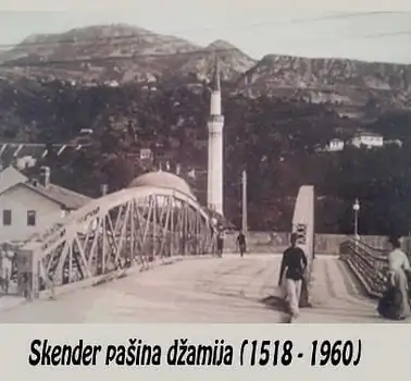Historijski prikaz mosta Skender-paše pokazuje raniji prelaz i identitet četvrti koji je prethodio kompleksu.