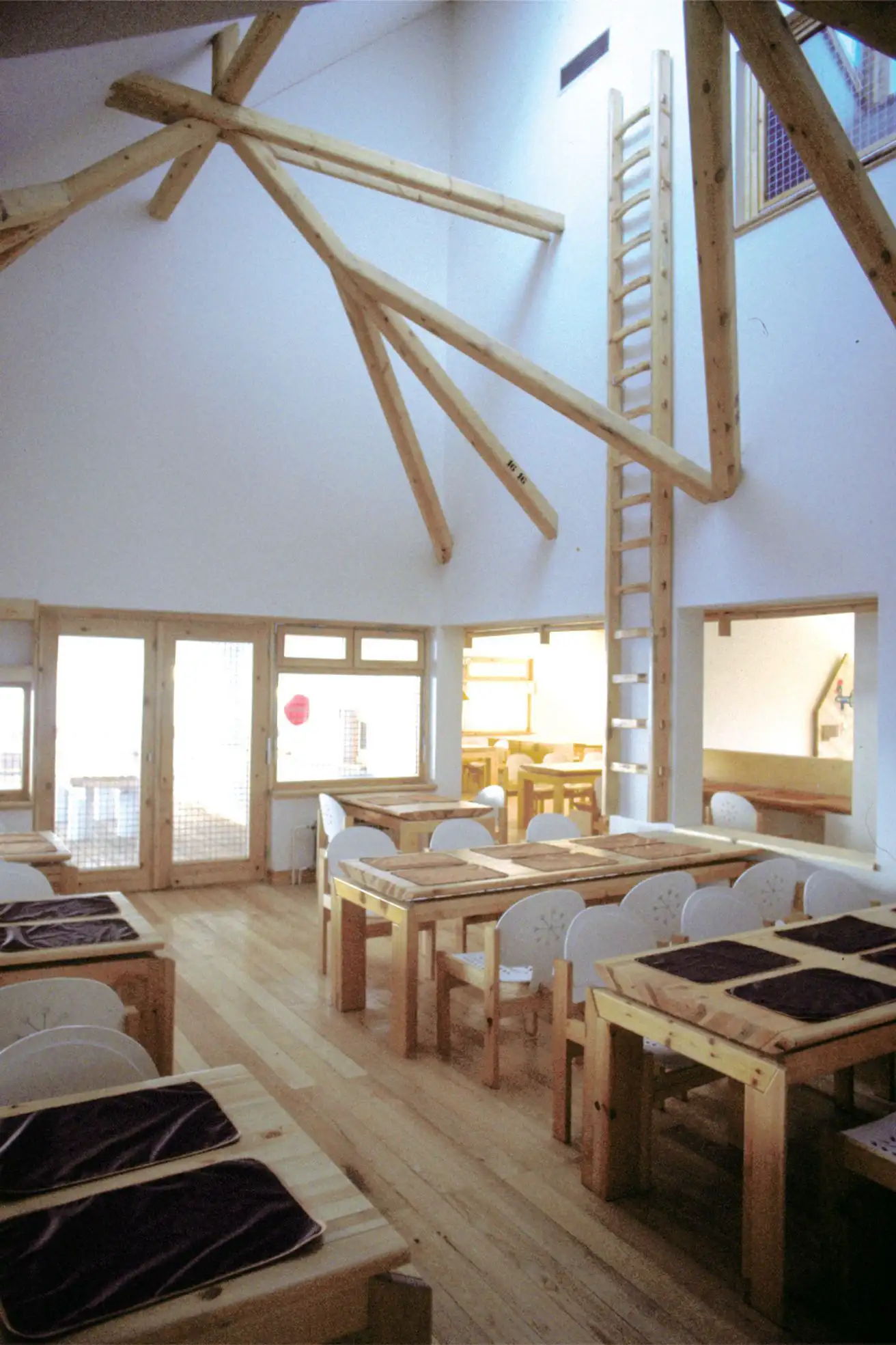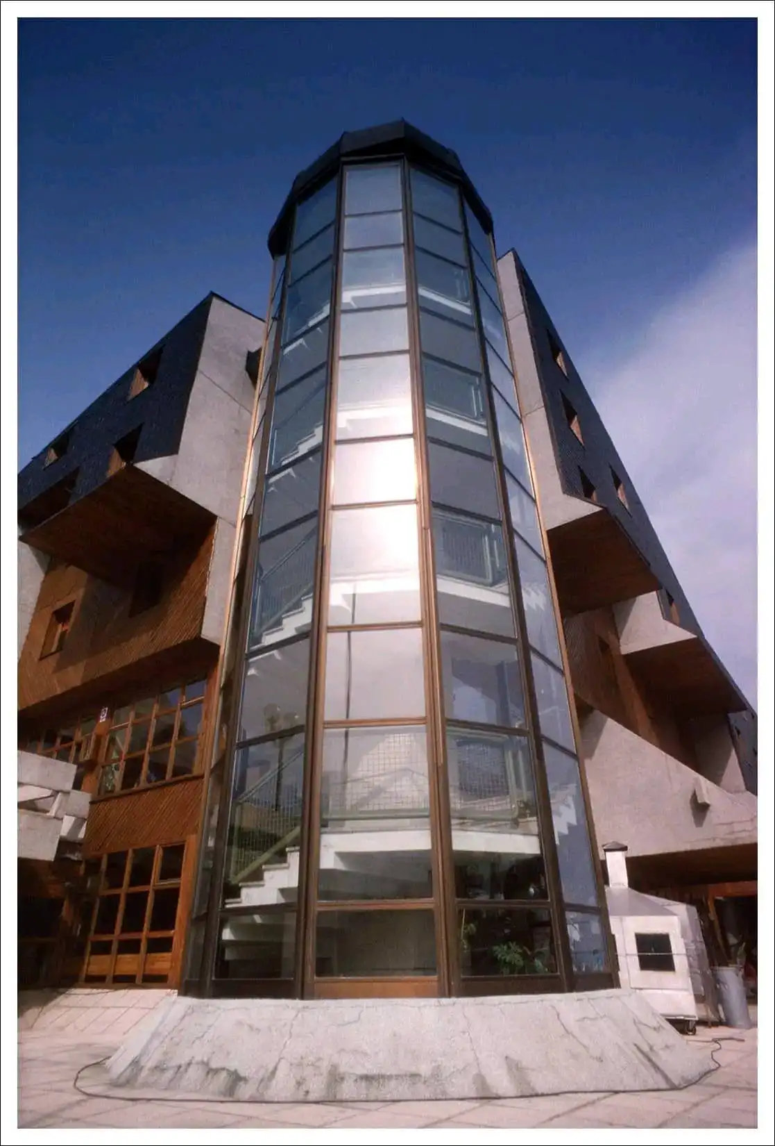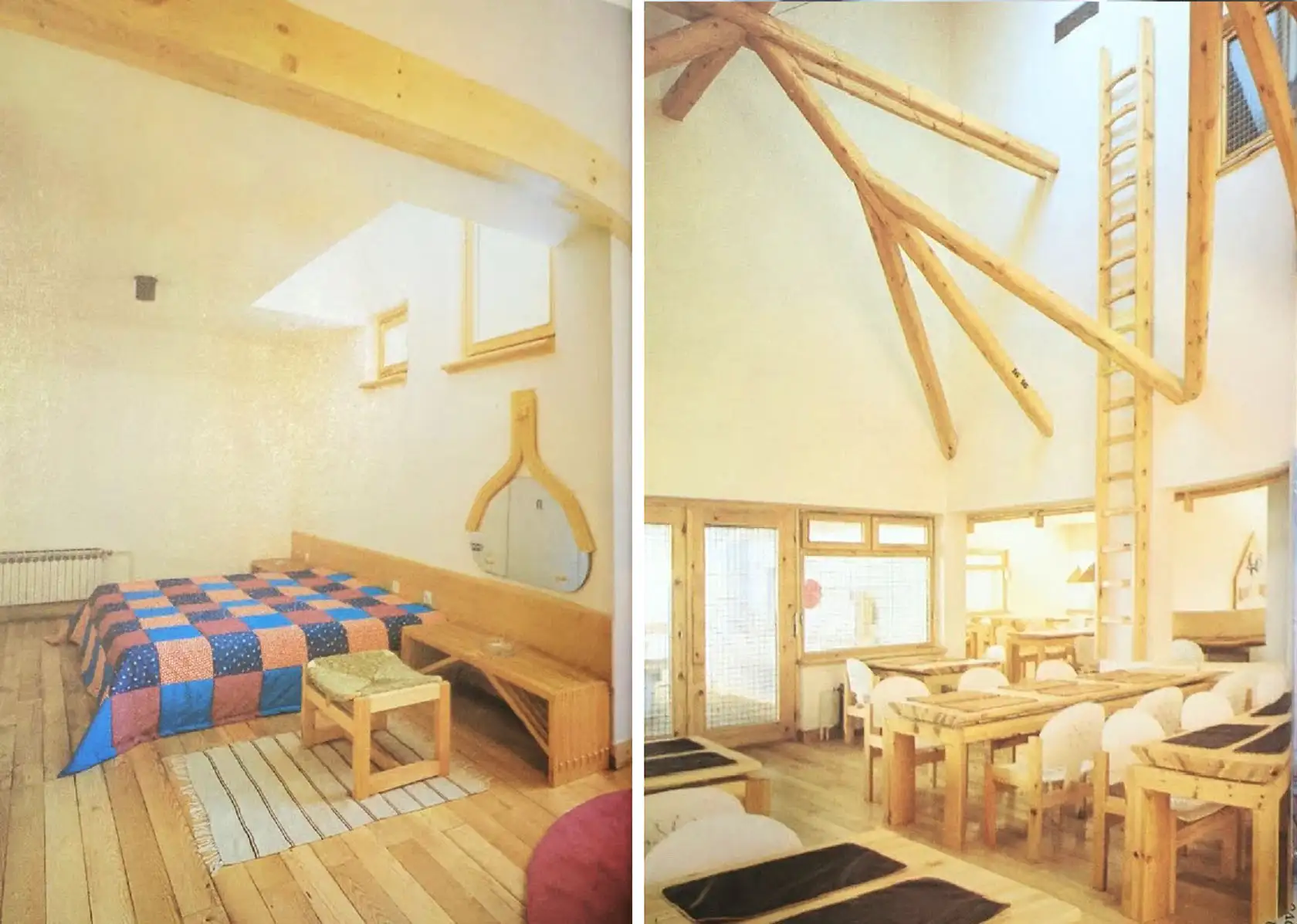- Hotel Vučko: Completed in 1983 and designed by Zlatko Ugljen, this 25-bed facility operated in part as a resort for workers of the "Feroelektro" company and as luxury housing for high-profile guests. Ugljen utilized his philosophy of "total design," crafting everything from the building structure to the furniture. To blend the hotel with the dense forest, he lowered the steeply pitched roof to just 220 cm above the ground. The interior featured bare, unpainted yellow pine wood offset by cooling white plaster walls. Tragically, this architectural masterpiece was completely destroyed during the Balkan wars in the 1990s.