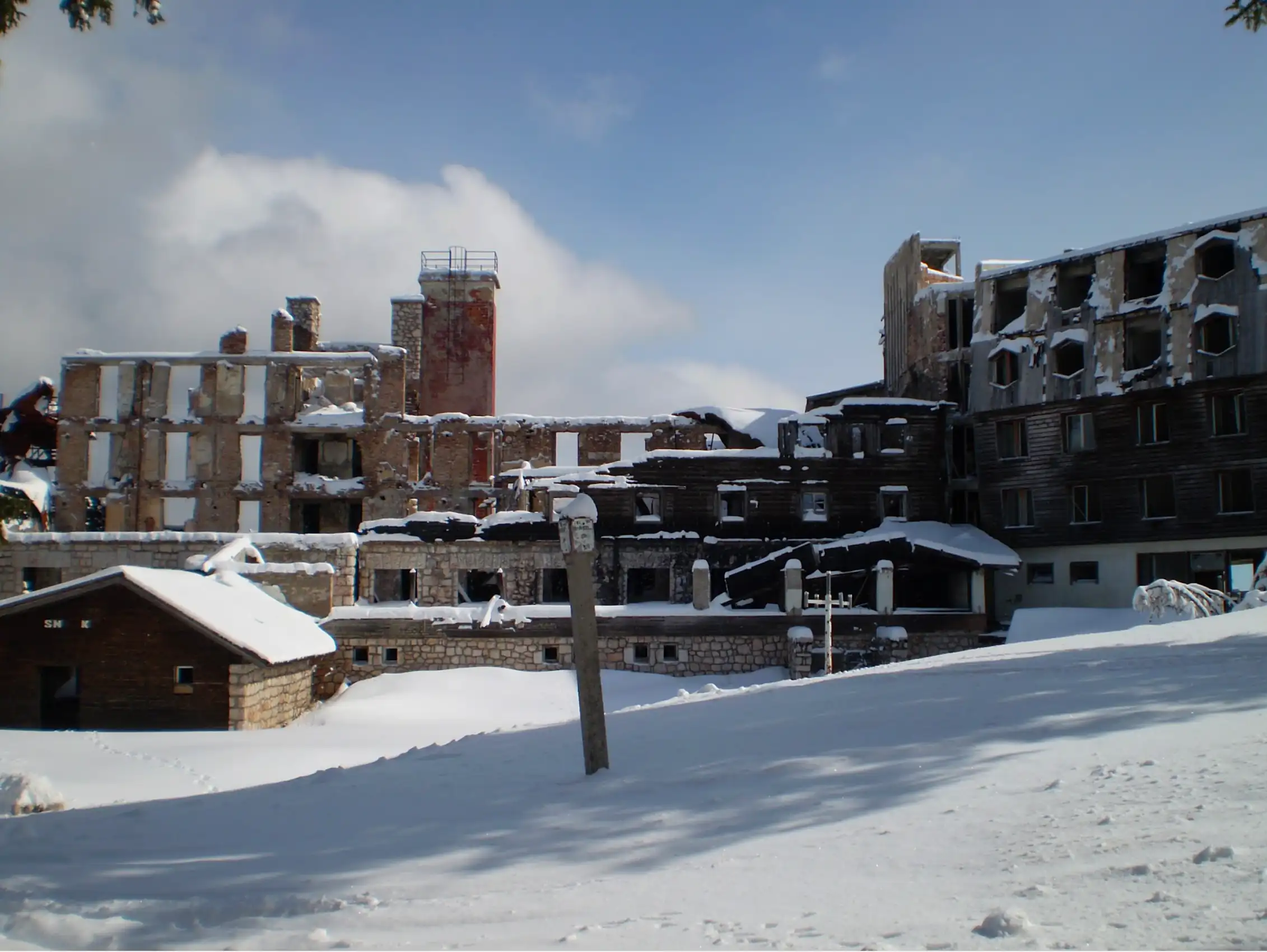- Hotel Jahorina: Because Jahorina hosted the European and World Cup skiing competitions in 1975, it was already ahead of the curve. The 320-bed Hotel Jahorina, designed by architect Vinko Jurik in 1975, was the largest and most modern facility on the mountain. During the Olympics, it served as the massive Main Press Center, featuring 70 desks, 24 telephone booths, and an extensive telecommunications center. The hotel continued to operate as a primary ski resort hub until the Bosnian War, when it was used to house refugees. It survived the conflict but was destroyed by an accidental fire in September 1995. The burned-out ruins sat next to modern ski lifts for decades, becoming a popular site for urban explorers, until they were demolished in 2020. The site was purchased for €1.8 million by the companies Galens and Pavord, who are currently planning a new €56 million luxury resort.