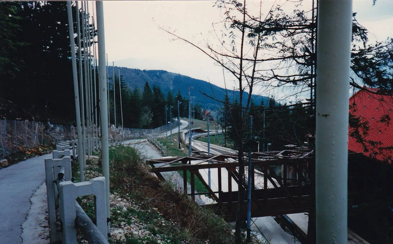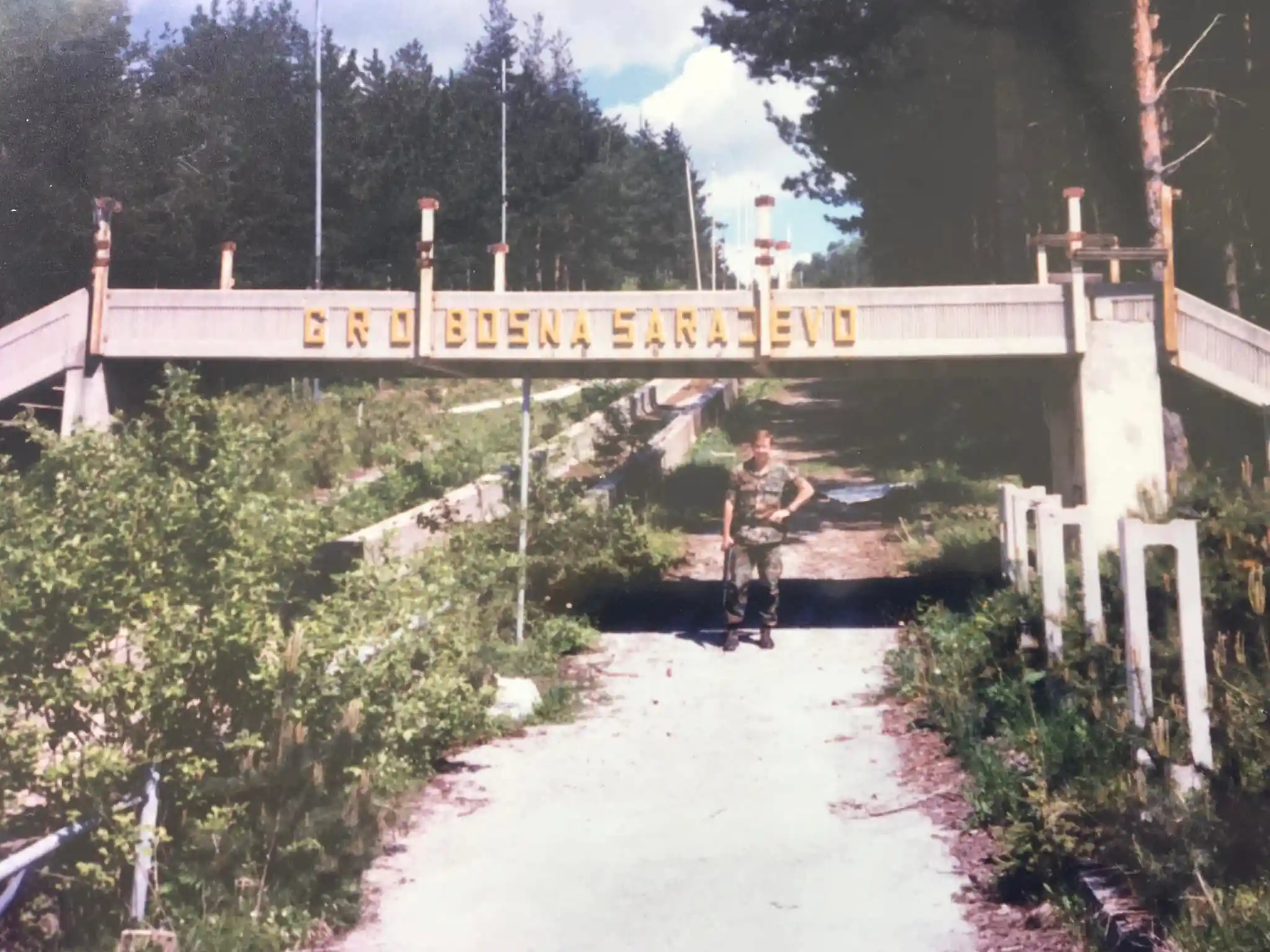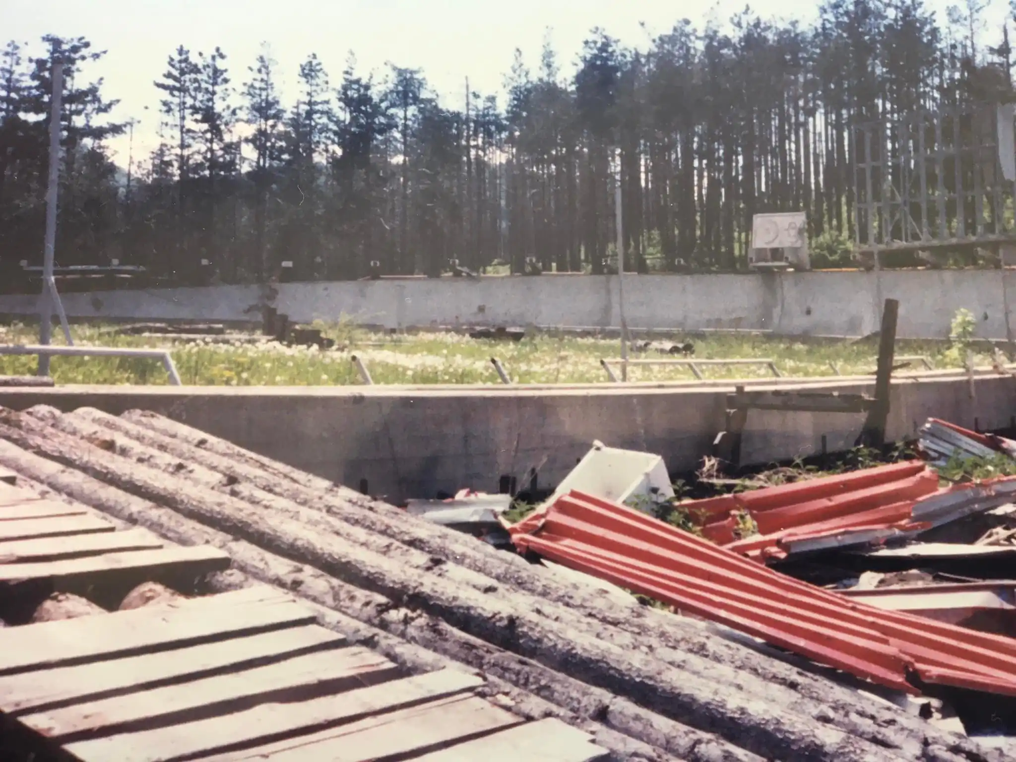 The Olympic track, once a theater of sport, was repurposed for war. It was used as an offensive position and an infantry trench; holes were punched through the concrete curves to serve as firing positions for snipers and artillery. By the end of the conflict, the site was a "moonscape" of destruction. The refrigeration pipes were ripped out, the start houses lay in ruins, and the surrounding forest was littered with landmines and unexploded ordnance.
