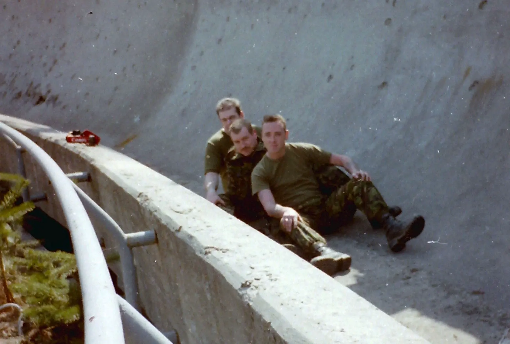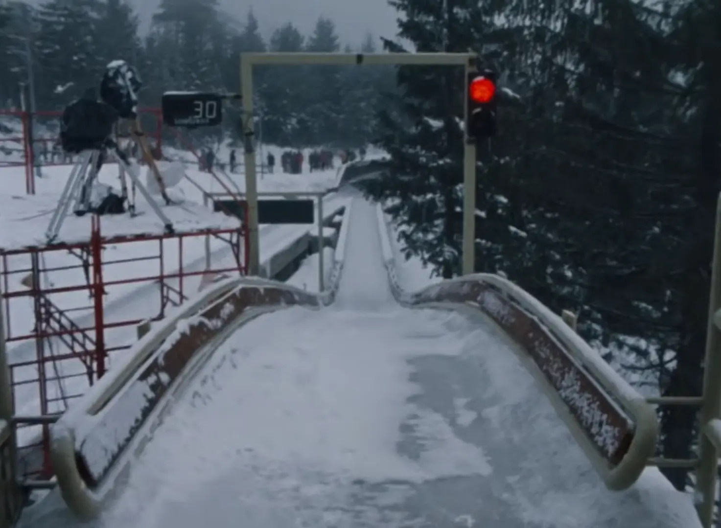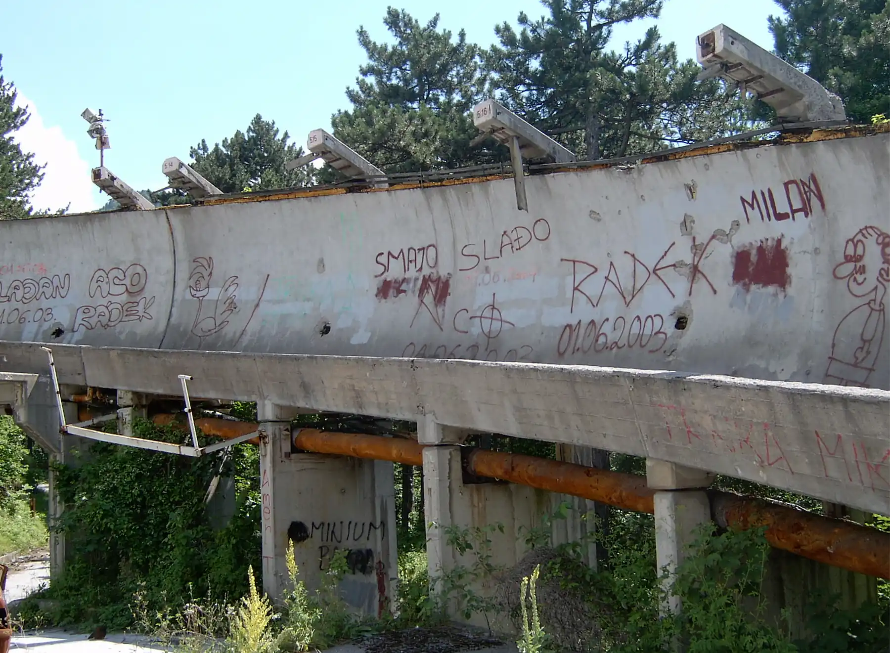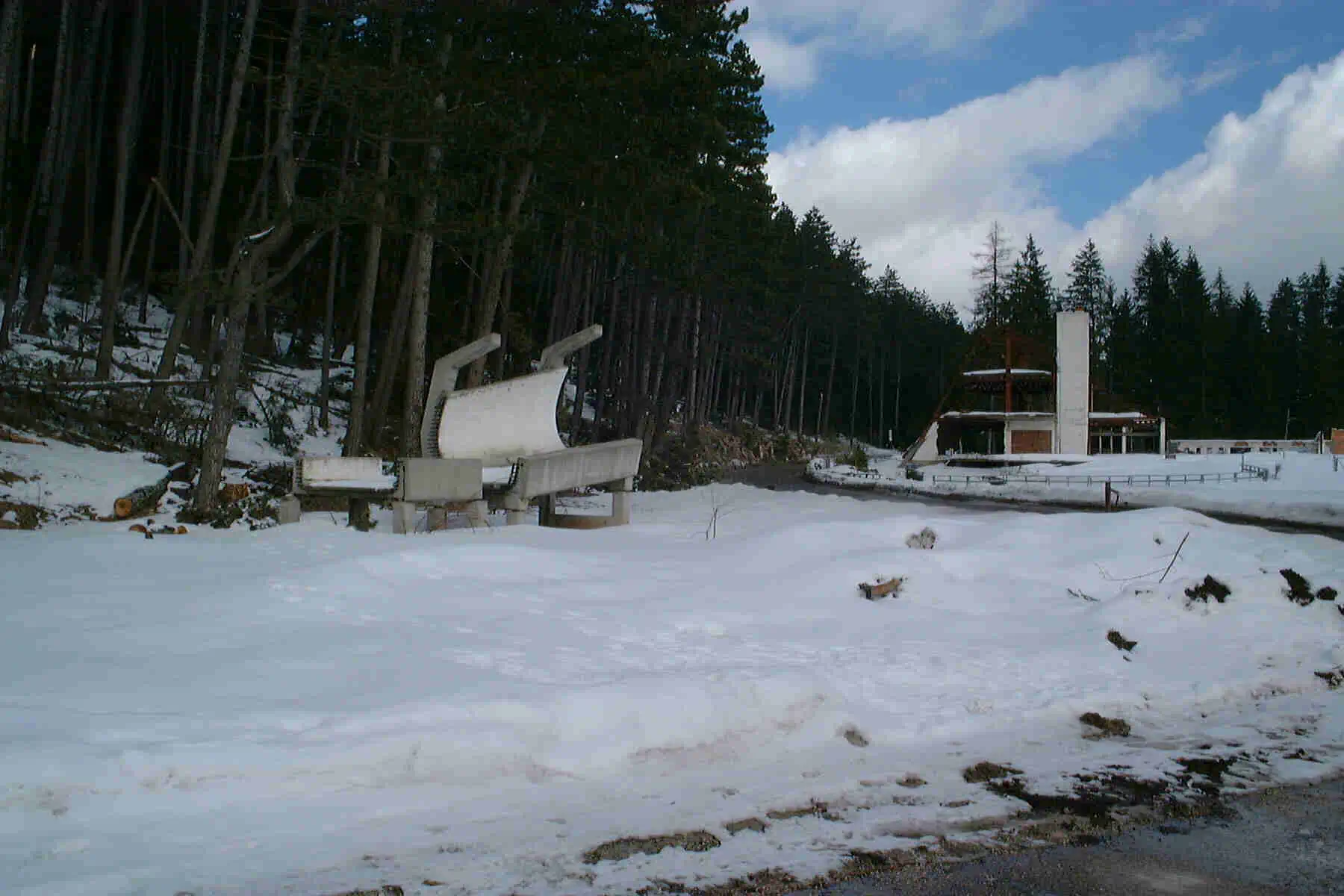 The Olympic track, once a theater of sport, was repurposed for war. It was used as an offensive position and an infantry trench; holes were punched through the concrete curves to serve as firing positions for snipers and artillery. By the end of the conflict, the site was a "moonscape" of destruction. The refrigeration pipes were ripped out, the start houses lay in ruins, and the surrounding forest was littered with landmines and unexploded ordnance.