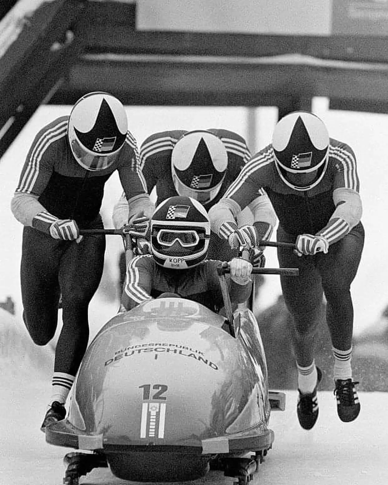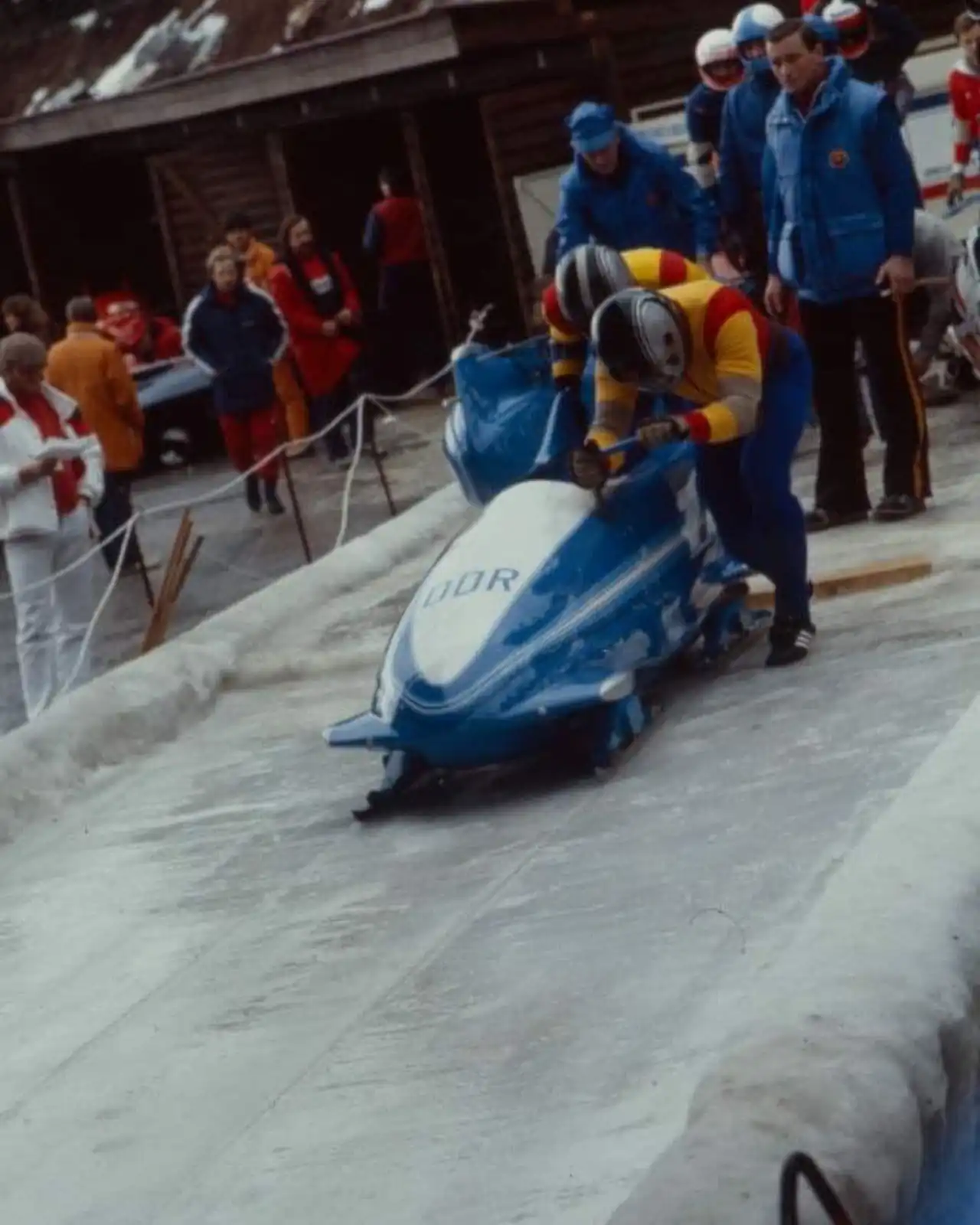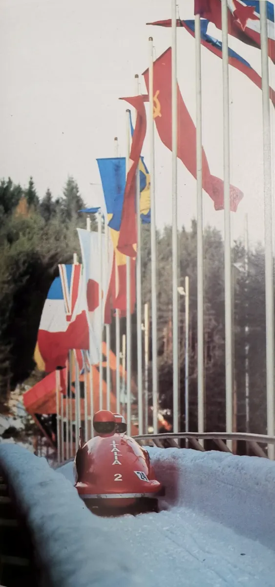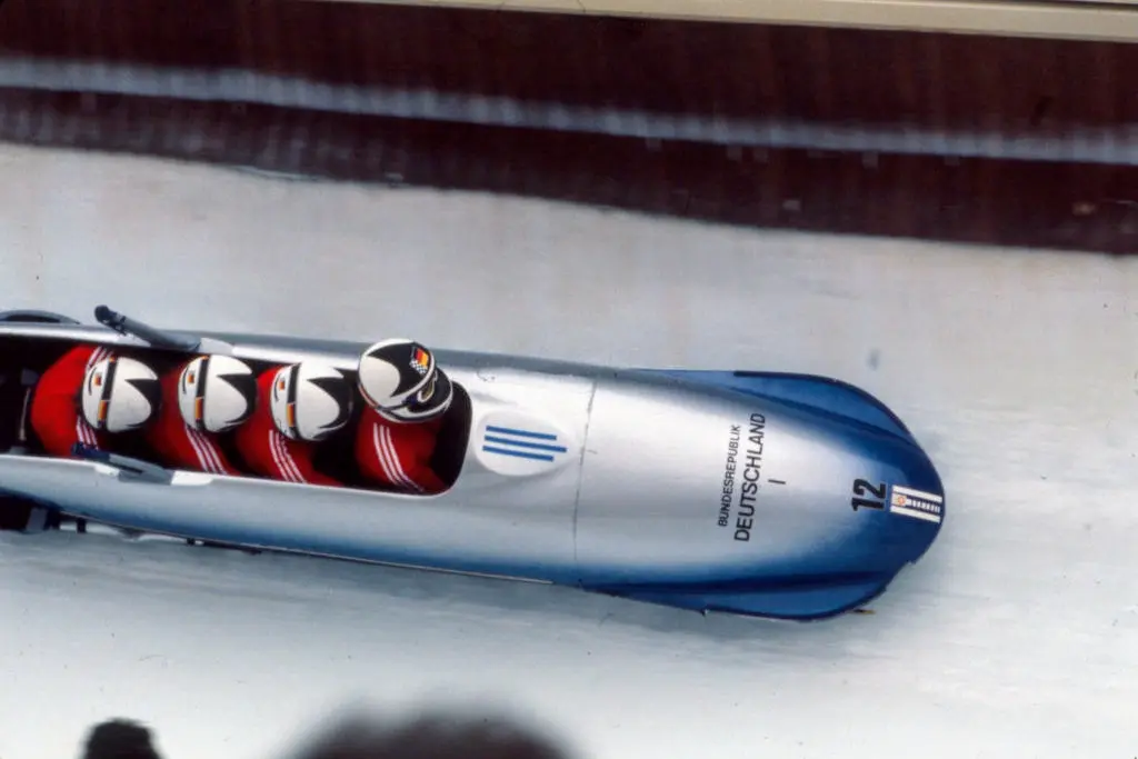 Sixteen nations competed in the two-man and four-man events. The GDR dominated here as well, with the crew of Wolfgang Hoppe and Dietmar Schauerhammer taking gold in both disciplines. In the two-man event, they reached an average speed of 116 km/h (72 mph). Hoppe was hailed by his peers as the "best pilot in the world," leading a team that mastered the technical demands of the "Sarajevo Model" track.