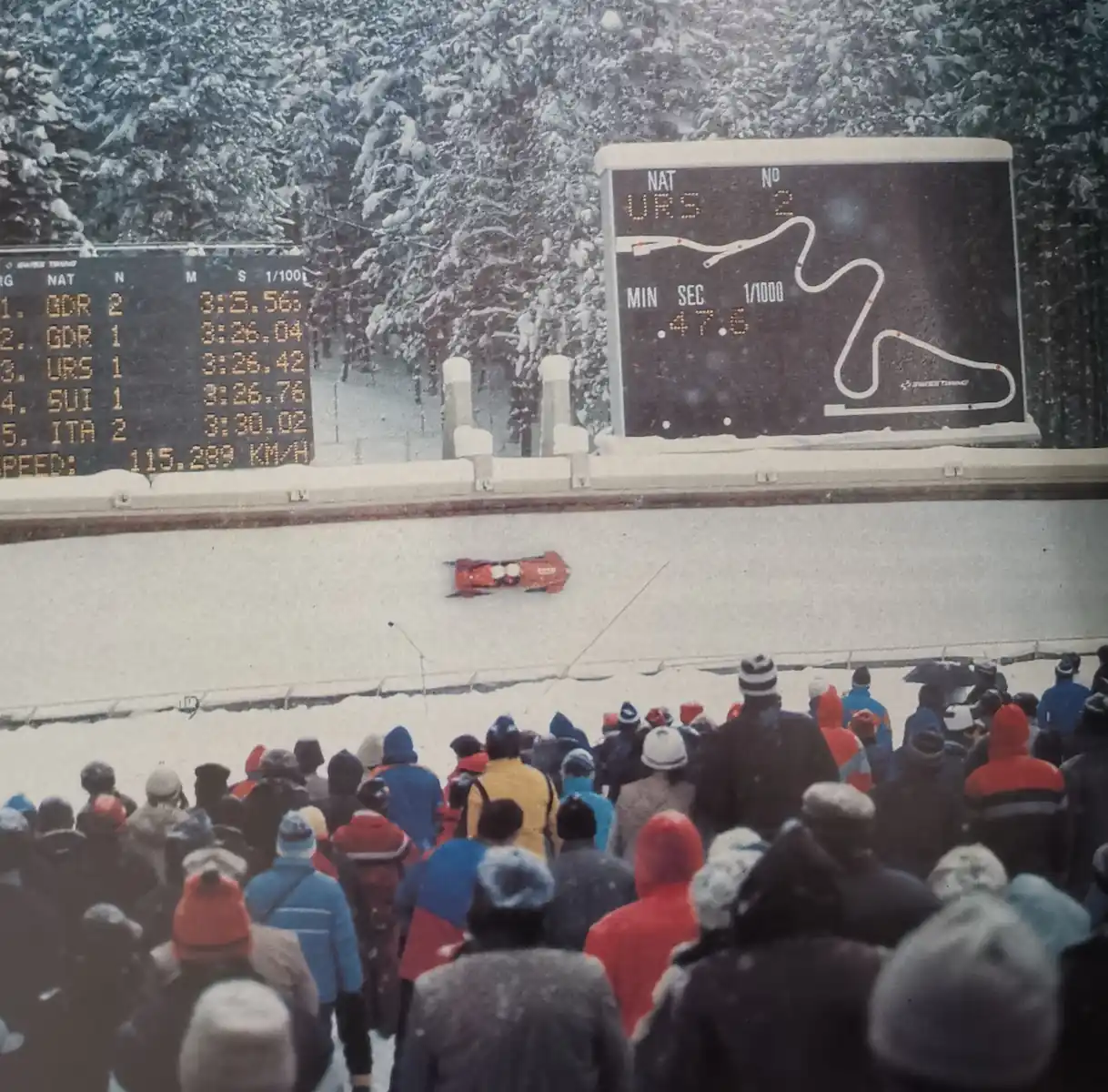 The Olympic competitions on Trebević officially ran from February 9 to February 18, 1984. Despite heavy snow and occasional blizzards that forced postponements on the higher alpine mountains, the Trebević track remained a reliable hub of activity, drawing a combined total of 50,000 spectators (30,000 for bobsleigh and 20,000 for luge) over the course of the Games.