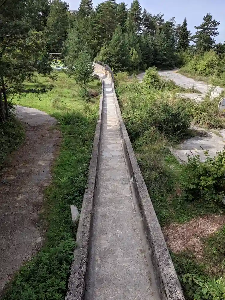 Once at the Vidikovac upper station, visitors are encouraged to follow the Olympic Story Educational Trail. This initiative has transformed the ruined concrete trough into a "living museum." As you walk down the 1,570-meter track, dedicated information boards and markers explain the technical significance of the curves, the 1984 competition highlights, and the track’s wartime history.
