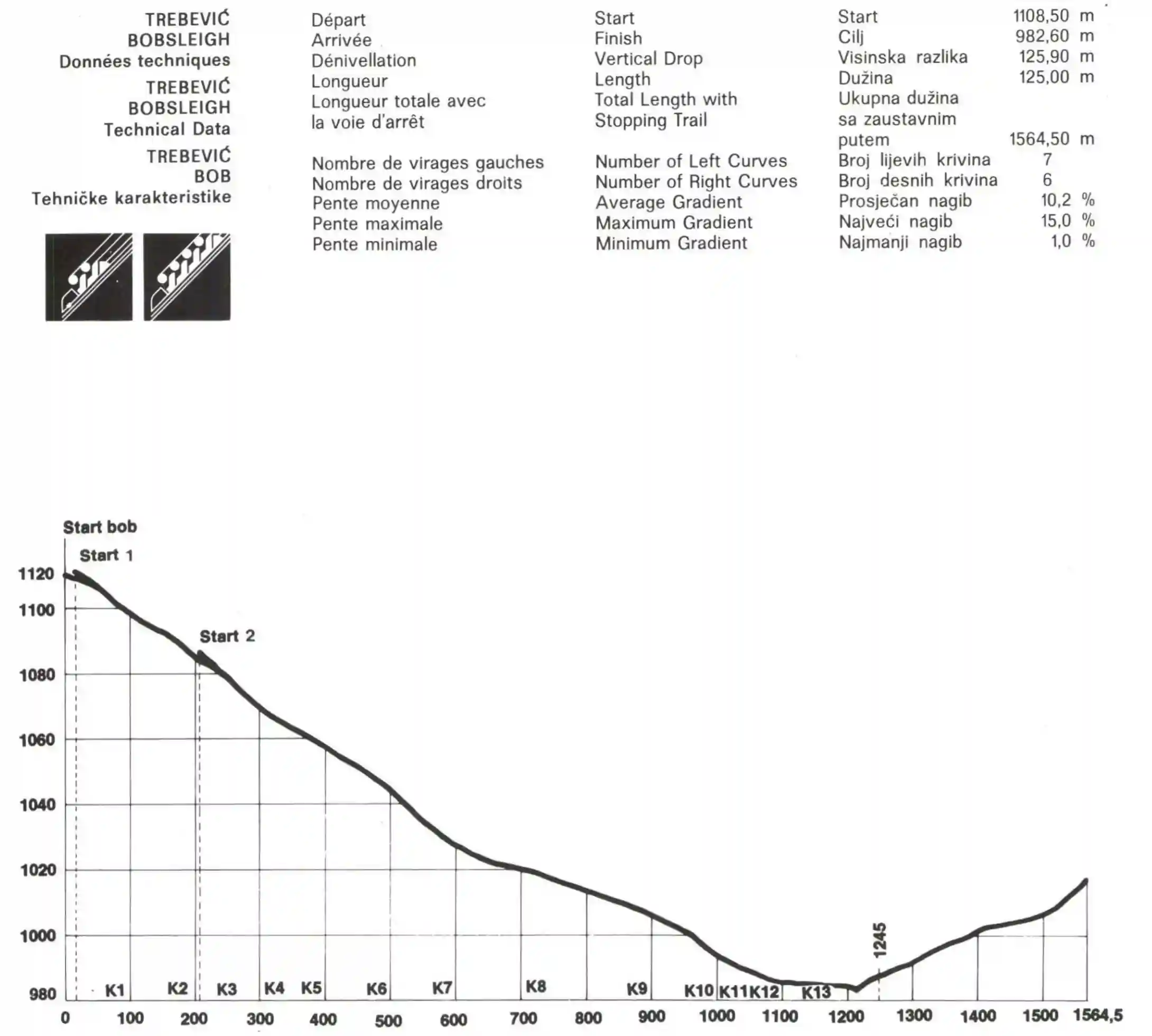 - Vertical Drop: Start at 1,108.5 m; Finish at 982.6 m.